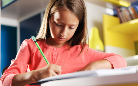 Attachment: child concentrating on homework in bedroom